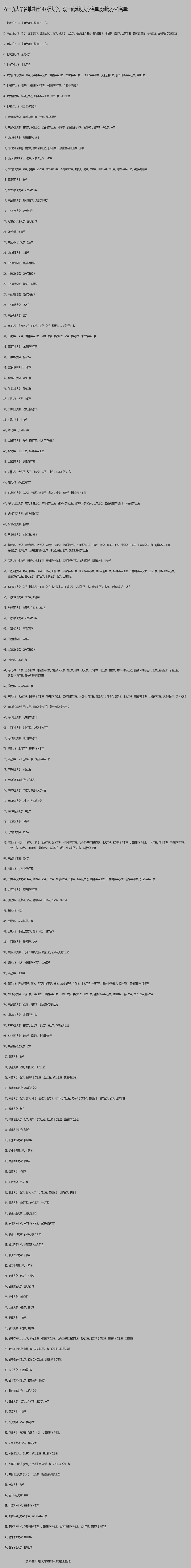 每年高考,大家填报志愿时,都紧盯着有着“985”、“211”以及“双一流”名号的高校,那这些高校是什么来头,具体这些工程怎么来的,具体又有哪些高校呢? 下面元哥用一文讲透什么是985、211、双一流高校!一起来看看吧! 什么是“985”高校? 985工程是指为创建世界一流大学和高水平大学而实施的工程,1998年5月4日,江泽民同志在庆祝北京大学建校100周年大会上表示,“为了实现现代化,我国要有若干所具有世界先进水平的一流大学。”教育部决定在实施《面向21世纪教育振兴行动计划》中,重点支持北京大学、清华大学等部分高等学校创建世界一流大学和高水平大学,并以江泽民同志在北京大学100周年校庆的讲话时间(1998年5月)将此命名为“985工程”。 “985工程”正式启动于1999年,是国家为建设具有世界先进水平的一流大学而做出的重大决策,截至2013年年末,先后列入985工程名单的大学有39所,包括清华、北大、上交、复旦、中科大、浙大等校,它们办学实力强劲,社会认可度颇高。 很长一段时间内,985大学在公众认知中代表了国内大学的顶尖实力。教育部表示“985工程”的规模已经稳定,将不会再新增高校,引入动态竞争机制,在一流的行业特色型大学中遴选实施“985工程优势学科创新平台”项目以重点打造世界一流学科群。 什么是“211”高校? “211工程”,是指国家面向21世纪、重点建设100所左右的高等学校和一批重点学科的建设工程,是当时建国以来由国家立项在高等教育领域进行的规模最大、层次最高的重点建设工程。1993年,原国家教育委员会印发了《关于重点建设一批高等学校和重点学科点的若干意见》,决定设置“211工程”重点建设项目,即面向21世纪,重点建设100所左右的高等学校和一批重点学科点。1995年11月,国务院批准,“211工程”正式启动。在当时,这是新中国成立以来由国家立项、在高等教育领域进行的规模最大、层次最高的重点建设工程。 从1995年“211工程”正式启动,到2008年,先后有112所大学纳入“211工程”建设名单,其中有4所大学有两个校区(两地办学,使用同一校名,但行政上互不隶属),所以总共为116所大学。入选的那些高校,常被简称为“211高校”或“211大学”。211大学里包含了39所985大学,也就是说,这39所大学既是985大学,也是211大学,双重身份加身,社会认可度更高。 什么是“双一流”高校? “双一流”建设是对“985工程”“211工程”的继承与创新。2015年10月,国务院发布《统筹推进世界一流大学和一流学科建设总体方案》。根据《总体方案》,到2020年,我国若干所大学和一批学科进入世界一流行列,若干学科进入世界一流学科前列;到2030年,更多的大学和学科进入世界一流行列,若干所大学进入世界一流大学前列,一批学科进入世界一流学科前列,高等教育整体实力显著提升;到本世纪中叶,一流大学和一流学科的数量和实力进入世界前列,基本建成高等教育强国。2017年1月,随着《统筹推进世界一流大学和一流学科建设实施办法(暂行)》的实行,“双一流”建设进入实施操作阶段。从当前的“双一流”建设名单来看,147所高校涵盖了所有的985、211大学,并在此之外新增了学科特色鲜明的非211大学。 双一流大学分为一流大学建设高校和一流学科建设高校。其中“一流大学建设高校”,指一些办学实力强、社会认可度高、高水平学科较多的高校。它又分为A、B类,A类高校实力更强。另一大类是“一流学科建设高校”,指一些拥有某些高水平学科或国家急需学科的高校。 一流大学建设高校综合水平更高,共有42所大学,其中39所是传统的985大学,3所是非985的211大学,它们分别是郑州大学、新疆大学和云南大学。 2017年9月,“双一流”建设高校名单公布,包括了42所世界一流大学建设高校(其中A类36所,B类6所)和95所一流学科建设高校。 2022年第二轮全国双一流大学名单共计147所,在第一轮基础上新增了山西大学、南京医科大学、湘潭大学、华南农业大学、广州医科大学、南方科技大学、上海科技大学等高校,另外此轮双一流建设不区分一流大学建设高校和一流学科建设高校。 “双一流”建设是中共中央、国务院作出的重大战略决策,也是中国高等教育领域继“211工程”“985工程”之后的又一国家战略,有利于提升中国高等教育综合实力和国际竞争力,为实现“两个一百年”奋斗目标和实现中华民族伟大复兴的中国梦提供有力支撑。 2019年11月28日,教育部官网发布声明:已将“211工程”和“985工程”等重点建设项目统筹为“双一流”建设。换言之,985大学、211大学的称呼已经进入历史,只是民间还一直保留着这称呼。 看完本文,你对985、211、双一流高校都了解了么?看看你身边的亲朋好友是否在上面名单的高校就读!